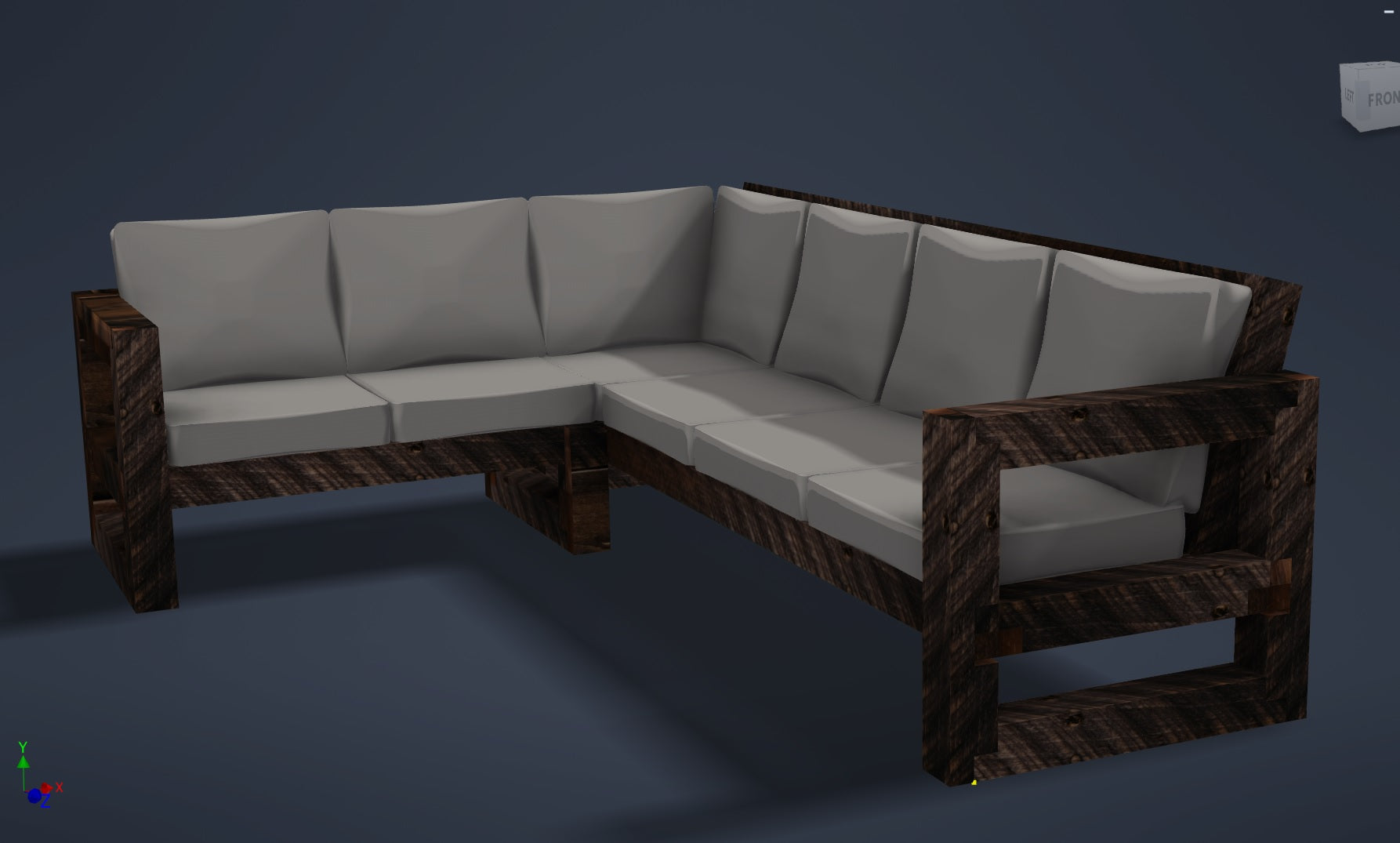The Sofa is a Handmade and rustic corner Sofa built from Pressure Treated Timber that is 100mm x 100mm Thick. This is an incredibly Strong and Industrial Design. Designed using a series of cantilevers and rebate joints that uses the strength of the wood itself to provide rigidity, this sofa even has a "floating" section that can support a fully grown adult. There are absolutely NO visible screws/Bolts for a simplistic and Minimalist effect.