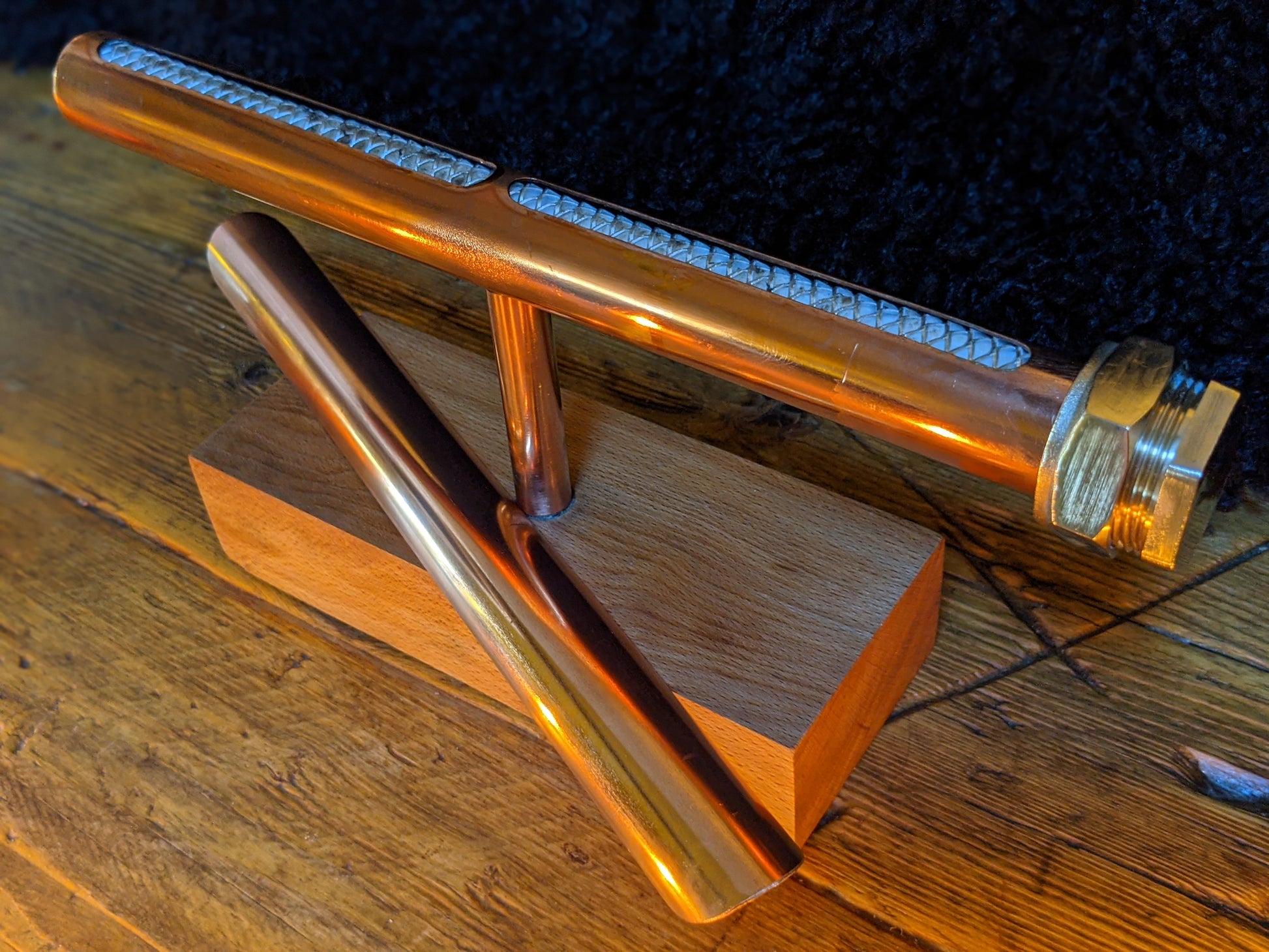 Enjoy cozy evenings outdoors with this handcrafted bio-ethanol burner, designed specifically for exterior use. Built on a solid oak base, this elegant piece features a handmade copper burner finished with brass end caps, creating a durable and stylish centerpiece for your garden, patio, or terrace.