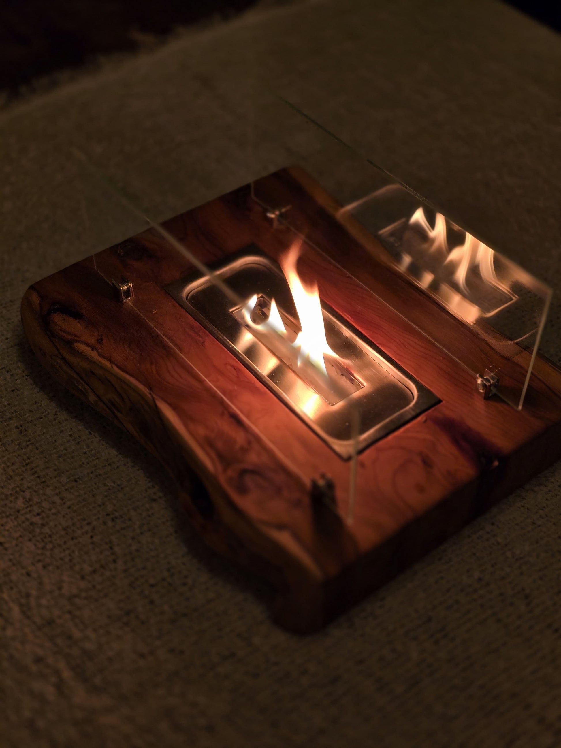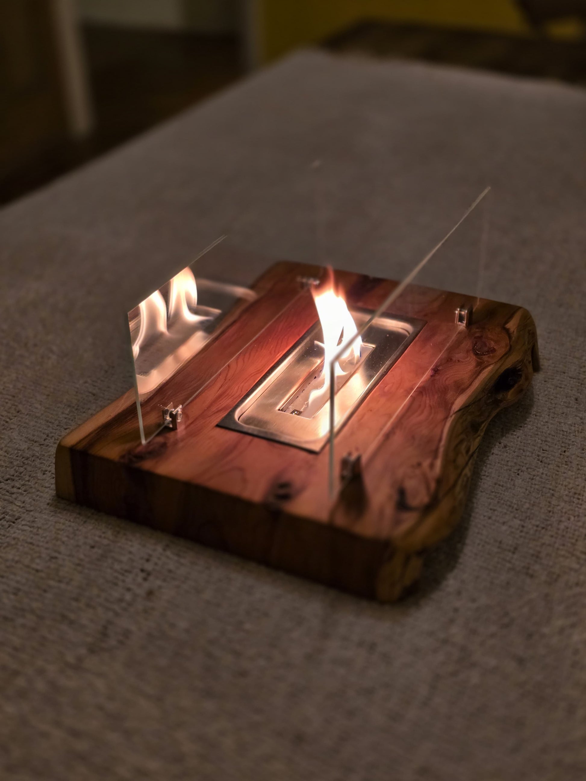 A handmade to order tabletop fireplace suitable for indoor and outdoor use. This eco friendly tabletop fire place will make the best centerpiece at any indoor and outdoor dining table.